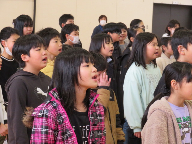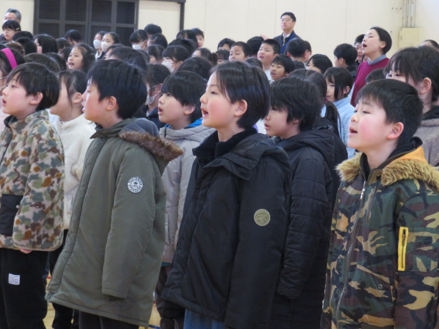 今日の音楽朝会は、卒業式で歌う在校生の歌