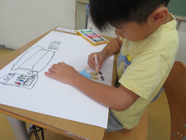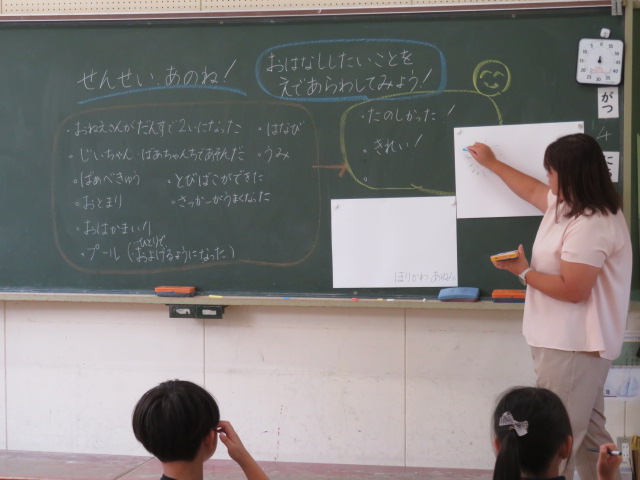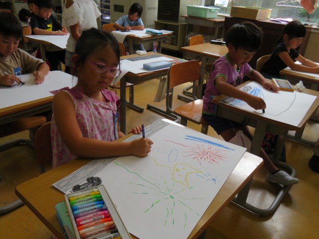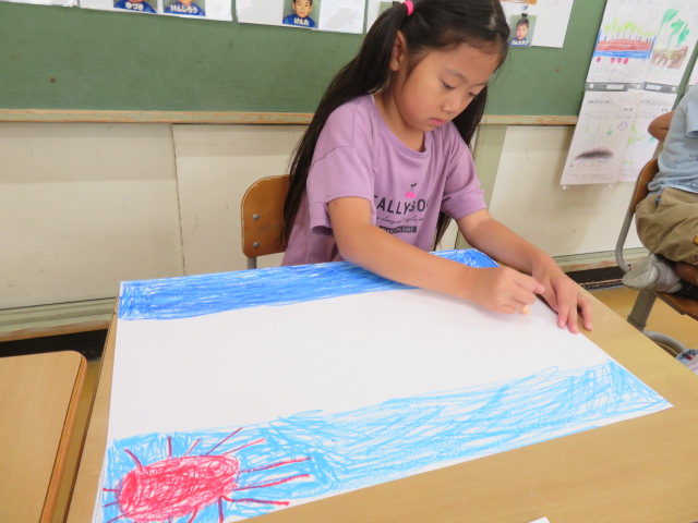 みんなに伝えたい、夏休みの楽しかったことを絵で表現。