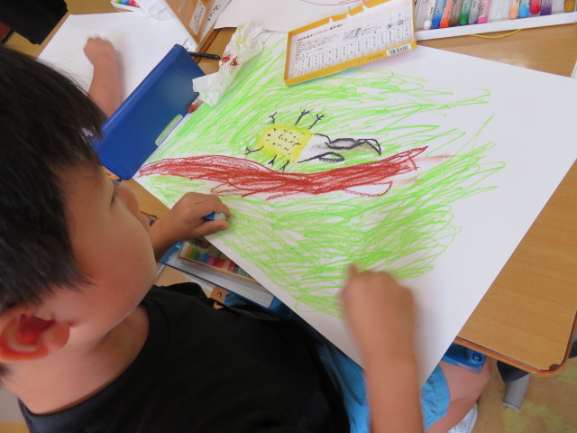 それぞれの描きたいことが画用紙にあふれ出ていました