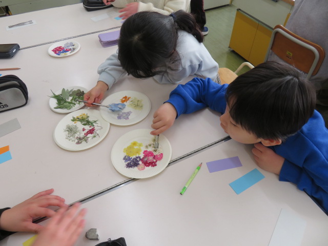 今日は、ななつぼし学級で「押し花しおり」作りの教室がありました。