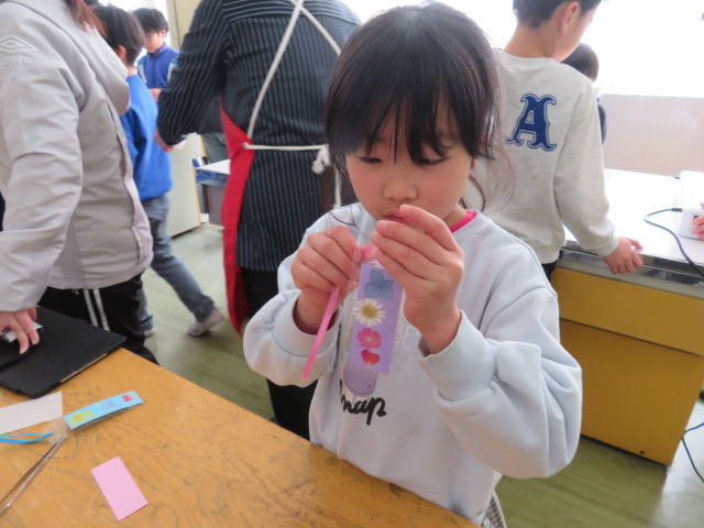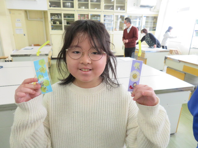 優しい気持ちで作ったしおり、きっと喜んでもらえるね。