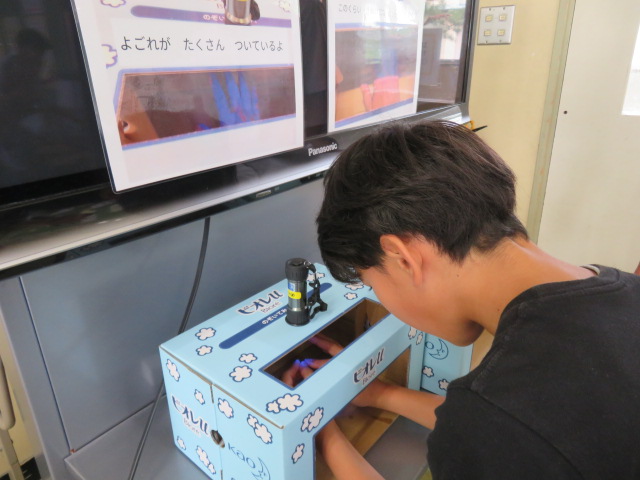 特別な機械で、手の汚れを隈なくcheck