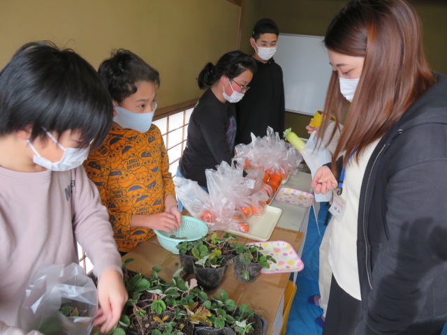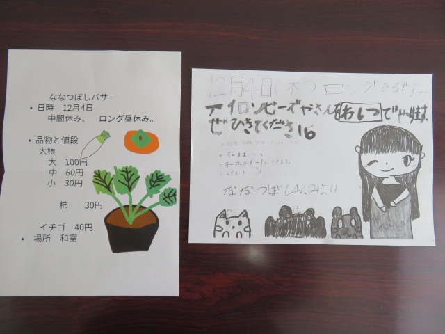 ななつぼし4組・5組の皆さんが作った野菜やアイロンビーズ、いちごの苗が商品です。
