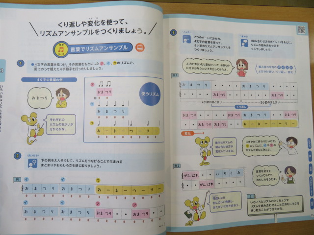 拍を感じながら、二分音符、四分音符、八分音符のリズムを使って