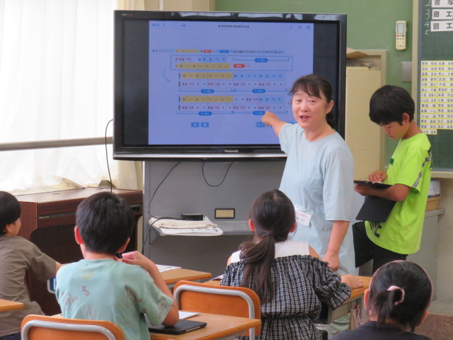 今日は4年生が音楽のリズムづくりをタブレットで学習していました。