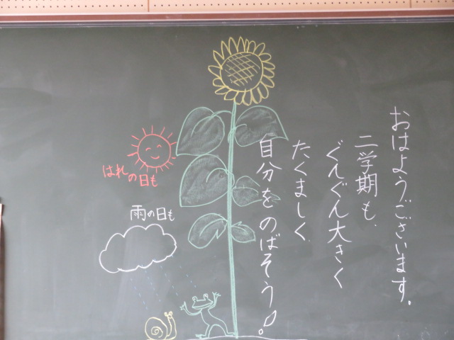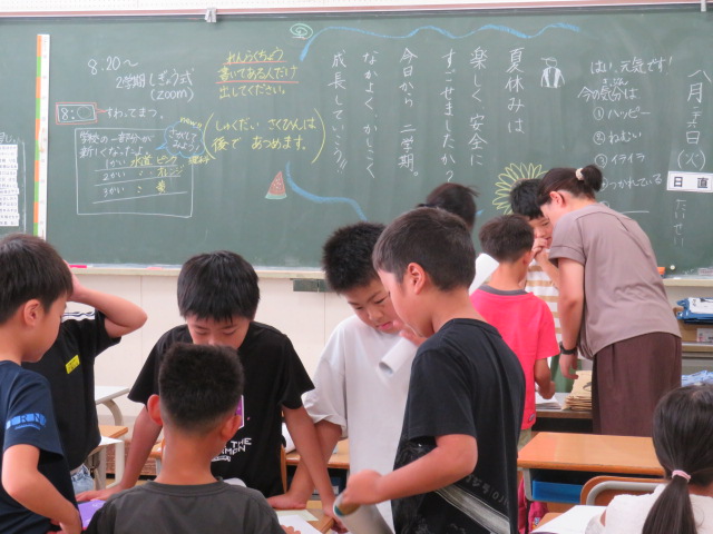 各クラスでは、夏休みの体験について話したり2学期の見通しを持ったり。