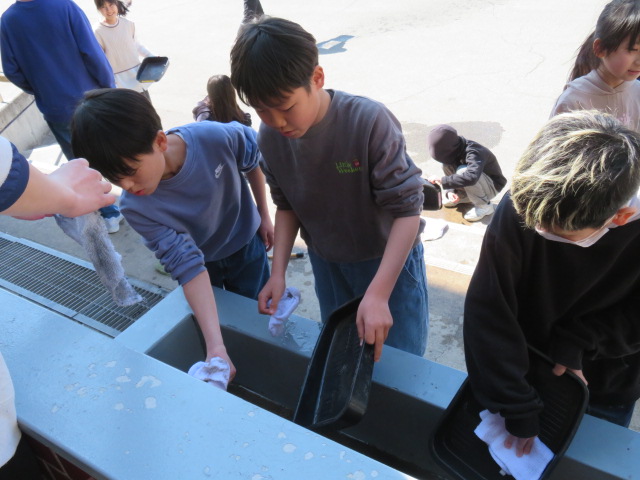 どの学年も、1年間のふりかえりや使った場所の掃除などを行い、一年を締めくくりました。