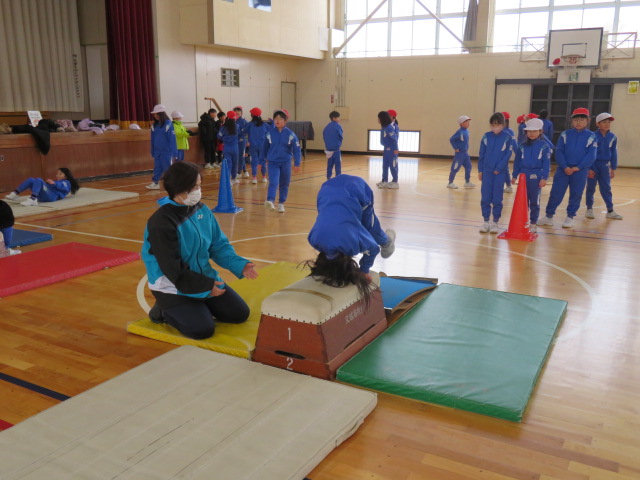 3年生は、跳び箱の学習で今日から台上前転に挑戦です。