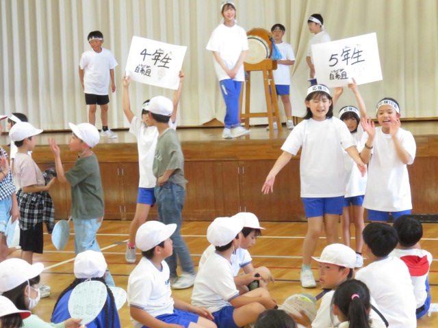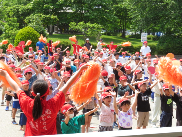 運動会に向けて赤・白両組の応援練習が連日行われています。