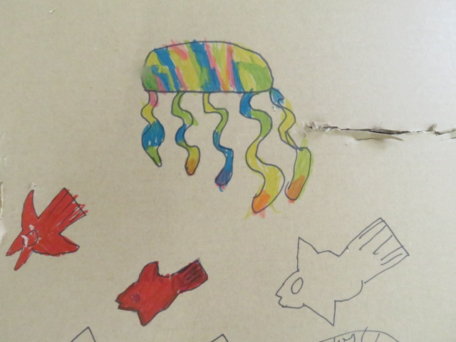 文の叙述から想像を膨らませて、海の仲間たちを創作中。