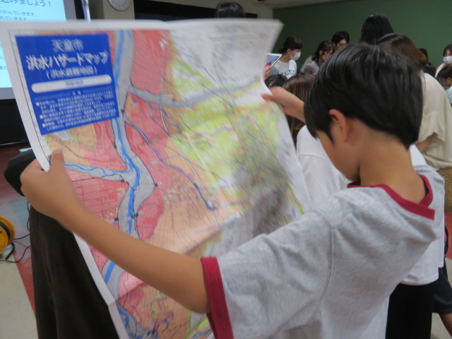 4年生は、親子で一緒に「災害図上訓練(DIG)」を行いました。