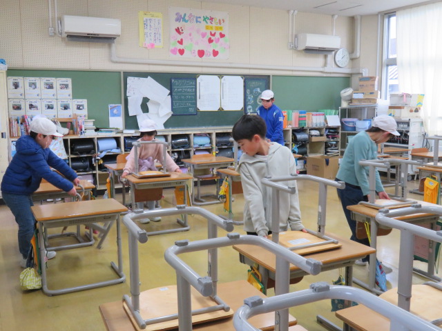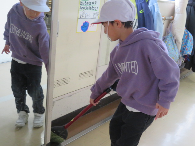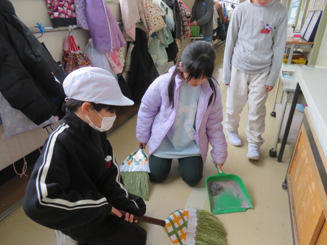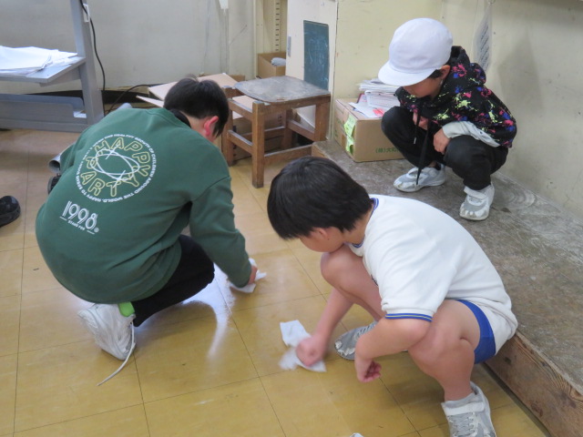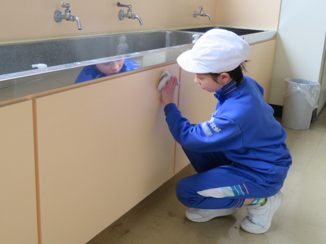 6年生の優しく頼もしいリードで、仲良くなった仲間と、みな安心して活動中。昨年度までよりも、協力して一生懸命掃除に取り組んでいます。