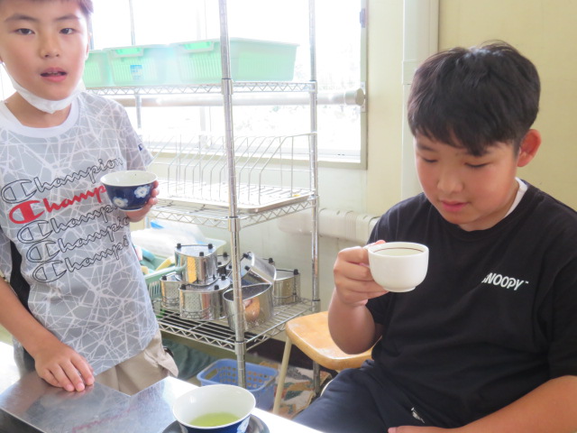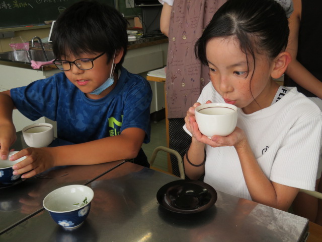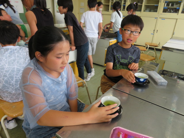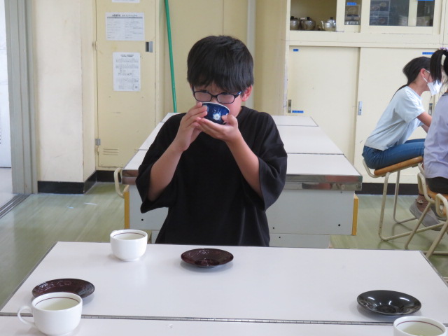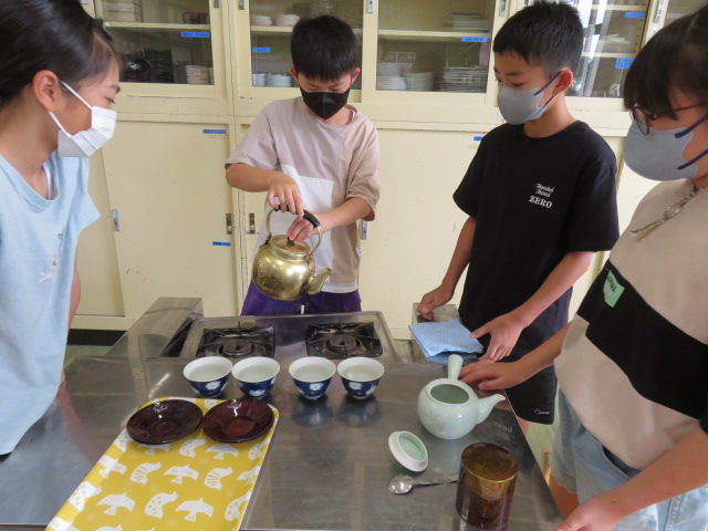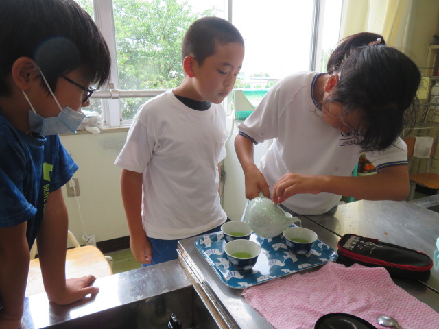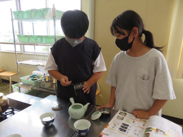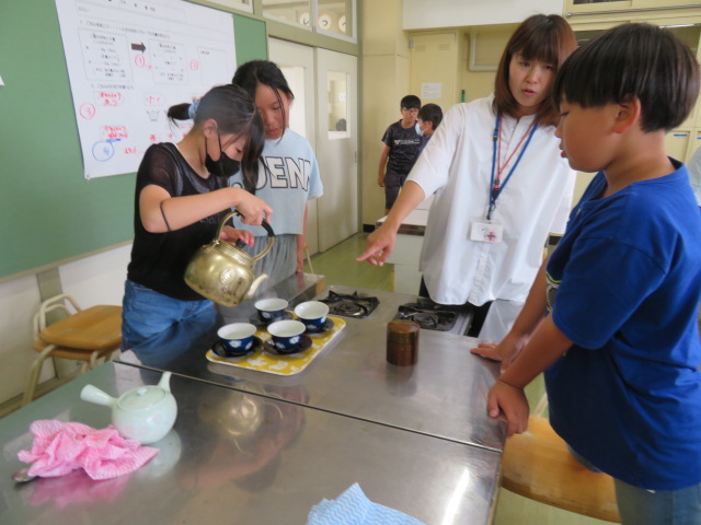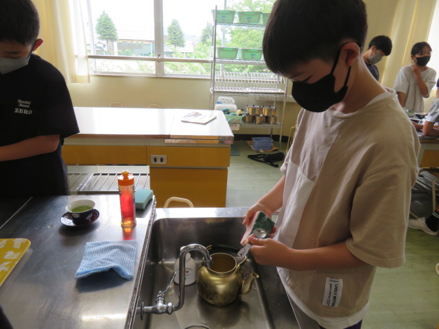 5年生の家庭科。今日はお茶を淹れる実習です。