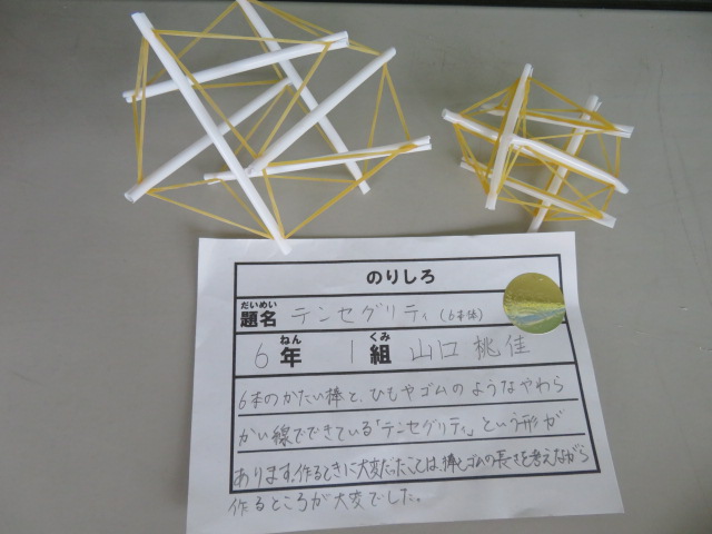 お忙し中、作品作りを支えてくださった保護者の皆様のご協力に感謝しております。