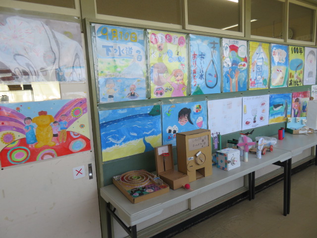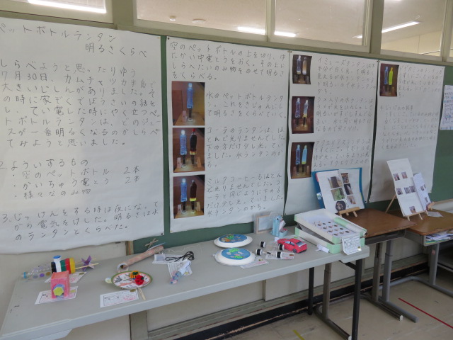 夏休みの宿題でそれぞれ取り組んだ図画や工作などの作品が