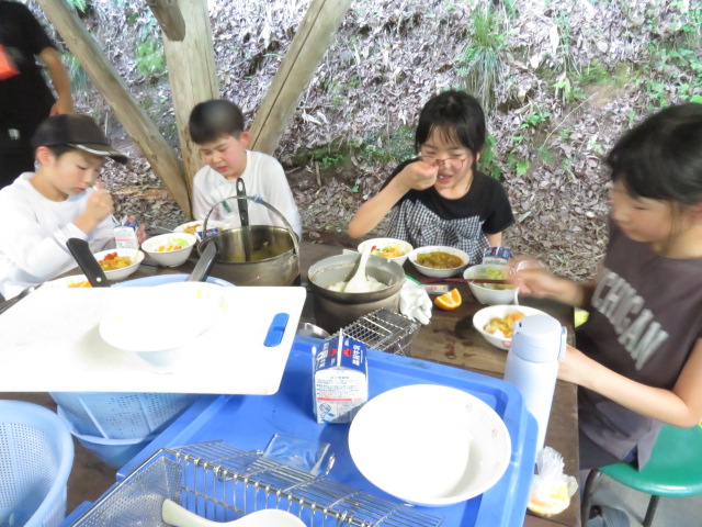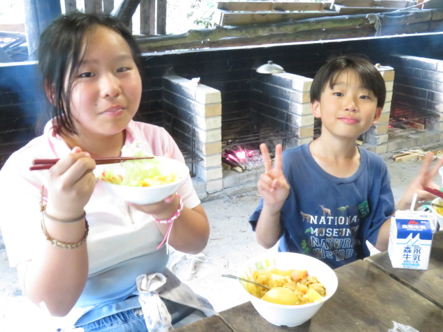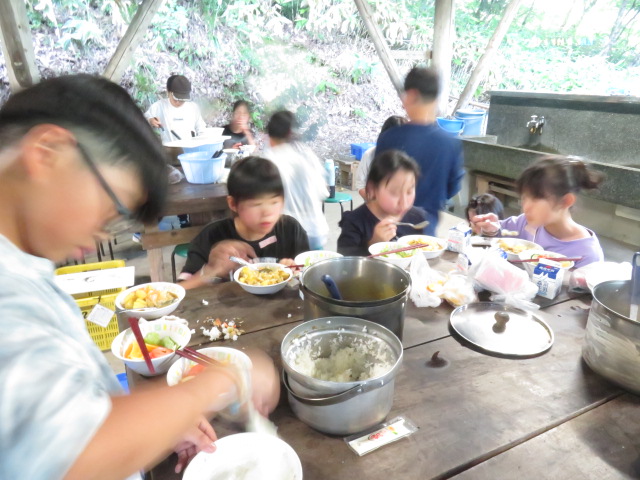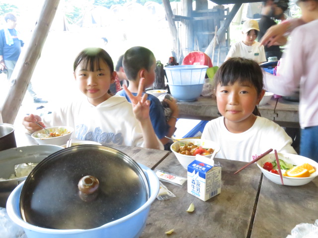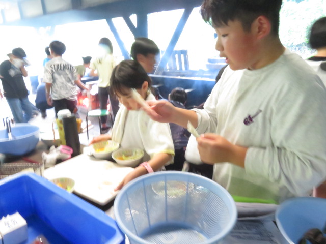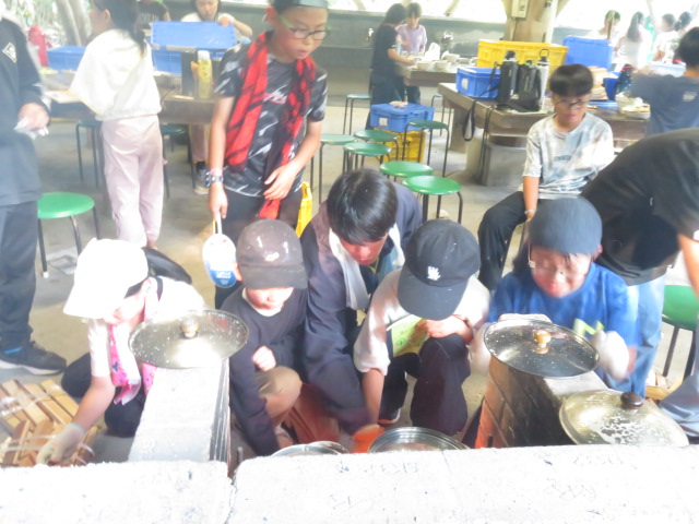 野外炊飯では、火をつける所で苦労しましたが、その後はとても手際よく。