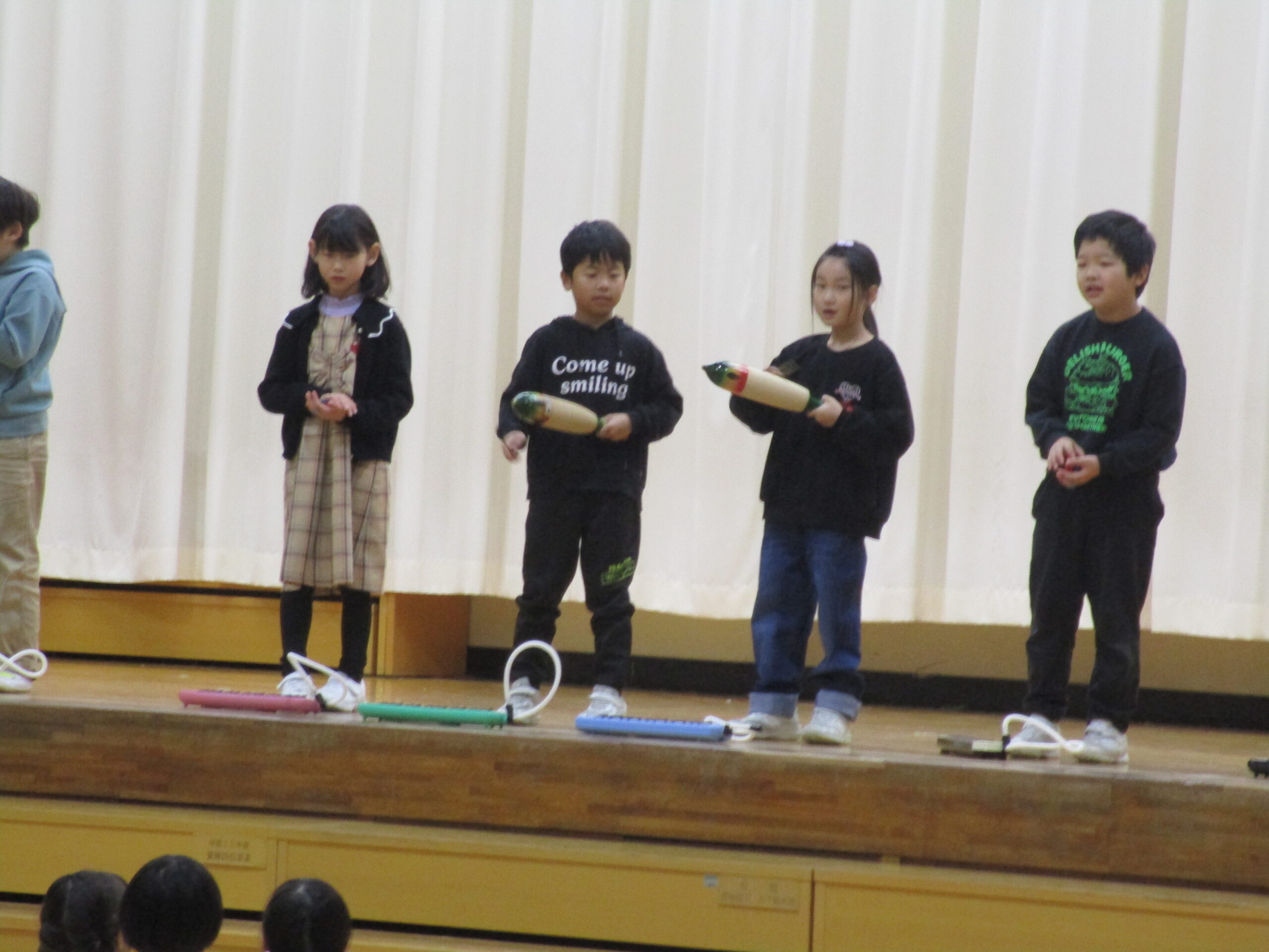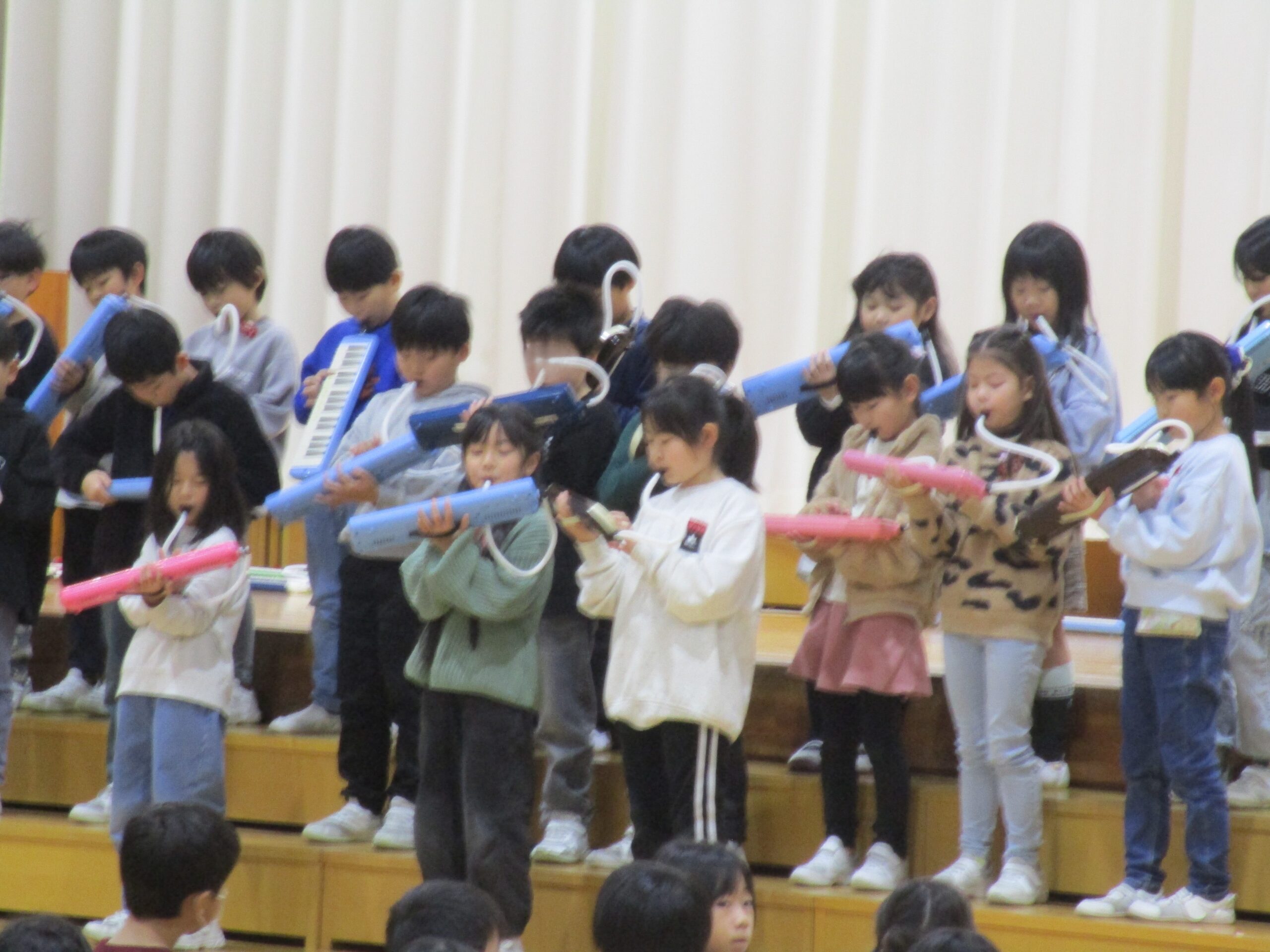 2年生は音楽で学習した歌やけんばんハーモニカの発表でした。