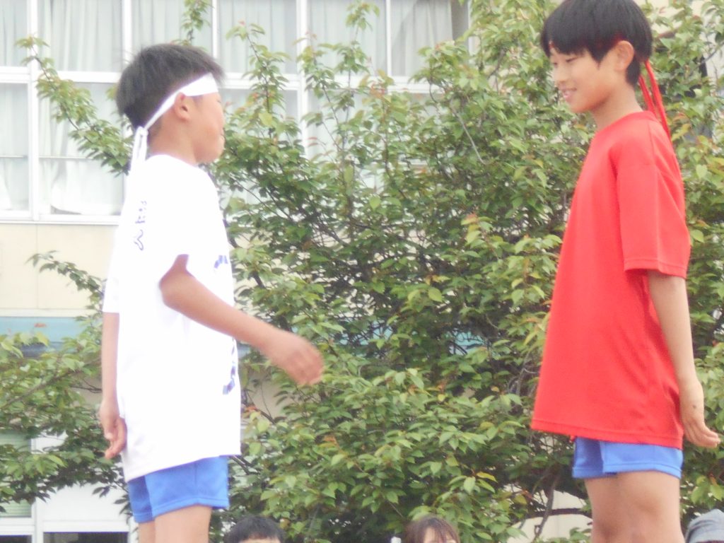 応援団長から「正々堂々戦おう」と、さわやかなエールの交換がおこなわれました。